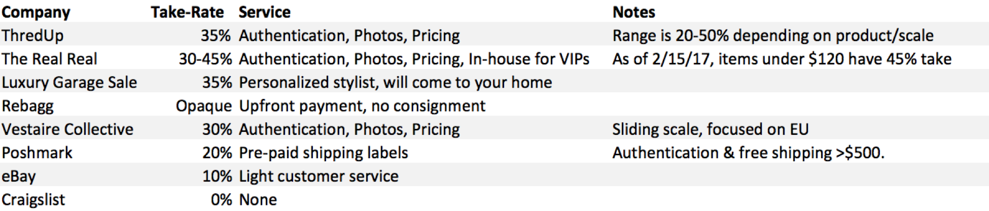 Take-Rate: In order to justify its cost structure, TheRealReal (and other comparable marketplaces) command take-rates of 30 percent, effectively triple what non-managed, peer-to-peer marketplaces charge as a commission to sellers.