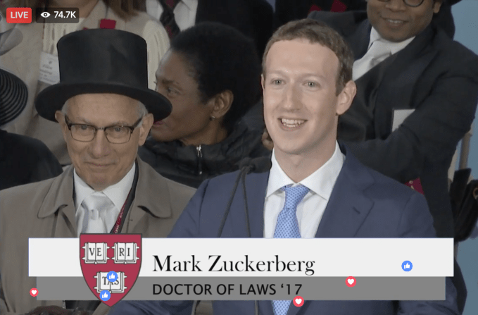Zuckerberg dropped out of Harvard his sophomore year in 2004 to scale up Facebook as it rapidly grew. But today he was awarded an honorary Doctor of Laws degree, apparently to the delight of his parents, and became the youngest commencement speaker in Harvard’s history.