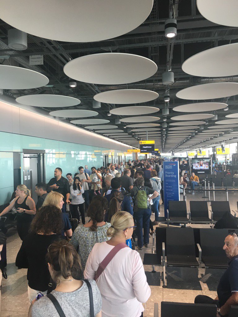 @British_Airways this queue goes up one side, down the other as far as you can see and the same distance again left! pic.twitter.com/UdxPDxpdvu