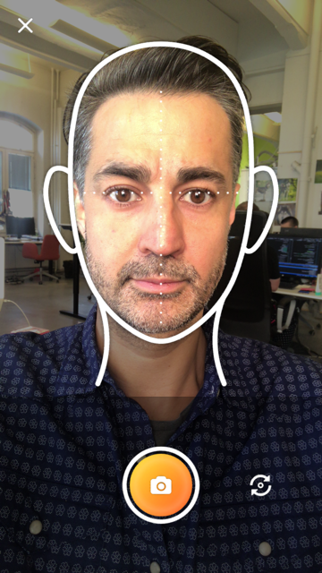 This translates in app to a marked face template at the point of selfie taking which encourages the user to correctly position their face within the guide lines. They also suggest using a white/light background for best results.