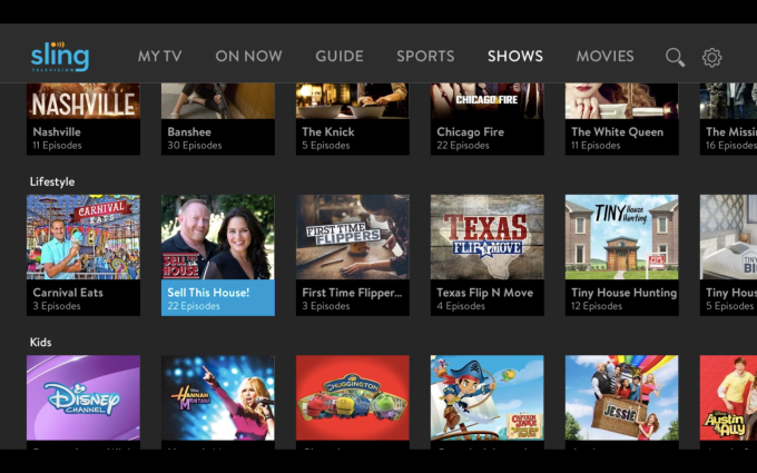 The Sling TV interface will also get a new “Shows” button for finding on-demand TV series from its catalog of 31,000 episodes. And its “On Now” section will be improved to recommend the more popular content first in its sorting.
