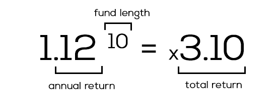 We agreed VCs need to earn 12 percent return a year, right? Most funds, while only actively investing 3-5 years, are bound to 10 years. Many newer studies are showing that 12-14 year funds are more accurate for today, but let’s stick with 10 just to give the VCs a fighting chance. That annual 12 percent rapidly grows, showing the power of compounded interest. Let’s see the math: