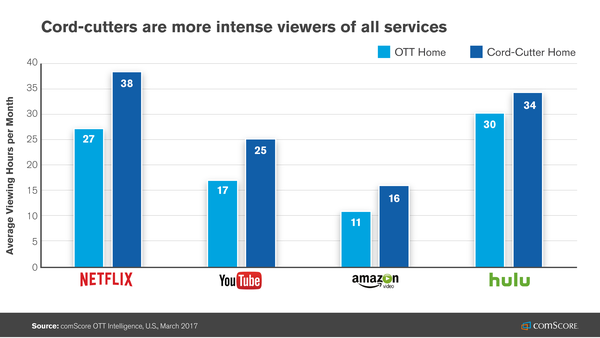 ComScore says it came to its conclusions after analyzing over-the-top viewing data in the month of March, 2017 for around 870 cord-cutting homes in its 12,500+ household panel.