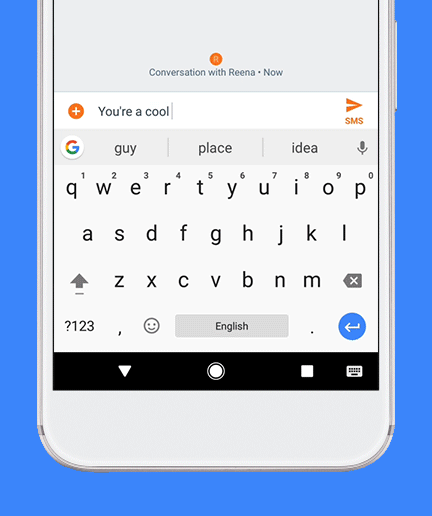 Now, in addition to making word suggestions as you type as most modern keyboards do, Gboard will suggest phrases. For example, if you type “looking forward,” Gboard will suggest “to seeing” or “to it” as you type. Gboard is able to make these smart suggestions through its use of machine intelligence – it knows what words occur in a language, and which words are likely to follow other words, so it can guess what you’ll say next.