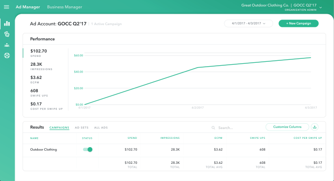 Snapchat announced its self-serve Ad Manage last month and today it officially becomes available. It lets clients buy, manage, optimize, and view analytics about campaigns pay via US credit card rather than credit line, spend as little as they want with no minimum, buy via auction with prices set by the market, utilize all of Snapchat’s ad formats and targeting capabilities, manage ad creative assets within the tool, and have ads reviewed by Snap for quality before they appear.