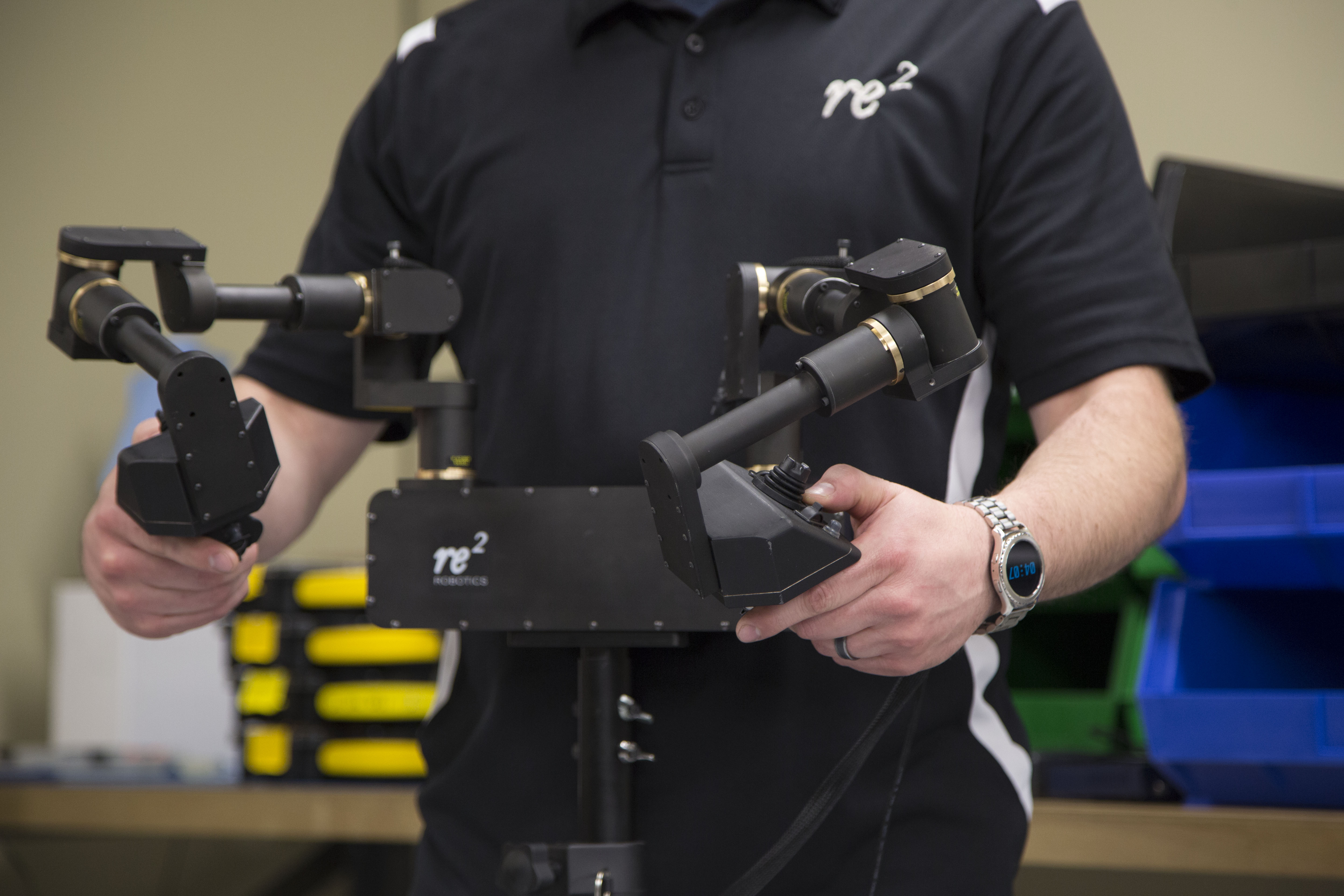 But the systems could benefit from a more direct method in high pressure situations. So, a decade ago, Re2 began to develop its current control scheme, one it believed would be even more intuitive than a gaming console by directly mimicking human movement. The company’s system includes two modular arms that affix to a military robot like Endeavor’s (formerly iRobot) Packbot, along with the tripod-mounted control scheme.