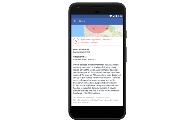 This will be aided by the rollout of crisis descriptions, also newly announced today. These descriptions will help people better understand the situation which may then further inspire them to help. Facebook says it’s working with NC4, a trusted third-party global crisis reporting agency, in order to add descriptions about the crisis to Safety Check notifications.