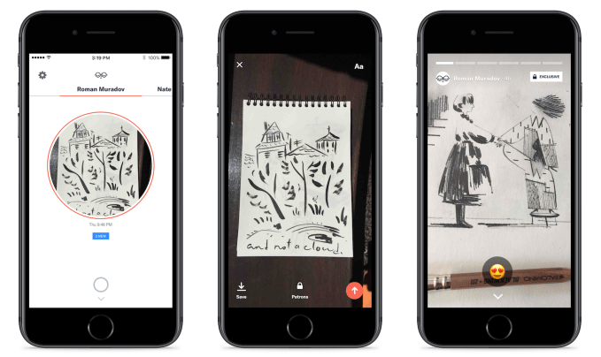 But most exciting and disruptive is Patreon Lens, a stripped-down Snapchat Stories clone where creators can share peeks into their lives and behind-the-scenes that are exclusively available to their paid subscribers. Instead of giving away their off-the-cuff content on Snapchat and Instagram, creators can actually earn money from their social media via Patreon Lens.