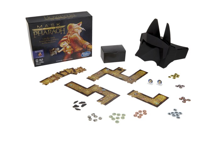 At launch, for example, its Family Crate will include a game called “Mask of the Pharaoh,” which is a collaborative, virtual reality game that involves the use of a companion mobile application for iOS and Android. Players in this game use an included VR mask to wander through a pyramid in ancient Egypt, and must describe a section of the pyramid to the other players as a means of advancing on the physical game board.