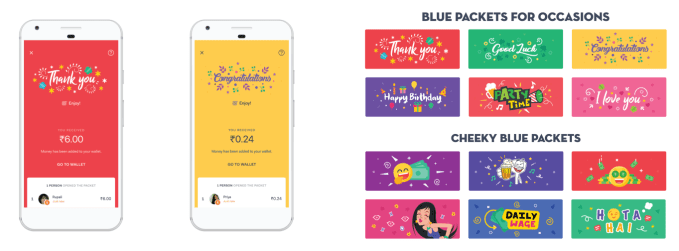 Hike, which is introducing version 5.0 today, is starting out with peer-to-peer and bank-to-bank payment options, the former being an in-app wallet that is not dependent on a bank account and the latter a service powered by India’s government-backed UPI payment system. Beyond sending cash to each other, Hike has also introduce a ‘blue packet’ feature that lets users gift digital envelopes of cash for special occasions, such as birthdays.