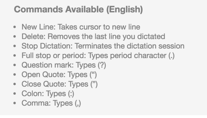 Dictate, meanwhile, only works in Office. However, it offers support for a number of commands, like “new line,” “stop dictation,” and “enter,” as well as other punctuation marks and actions. You can also choose to insert your punctuation manually, or allow the software to do it automatically as you speak.