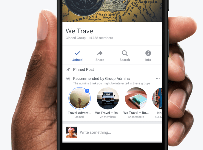 Group To Group Linking: Some Groups are local chapters of bigger organizations, or are connected to similar groups with overlapping memberships. Group to group linking lets admins display suggestions of similar or related groups that their members might want to join, too. Facebook says more formal sub-Group structuring is coming. Together, these could improve Group discovery while encouraging local- or interest-based branches of Groups to assemble and have more intimate conversations.