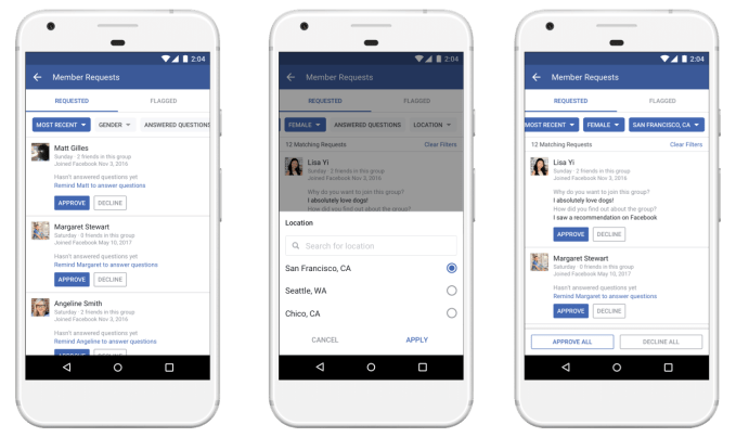 Membership Request Filtering: Facebook already launched the ability to gate Group membership with a screening questionnaire to make sure the potential admit isn’t a troll or will dilute the community. Now Facebook is automating the screening decision process by letting admins set filters to only admit certain genders or people from specific locations. Unfortunately, these inflexible rules could potentially exclude people they shouldn’t.