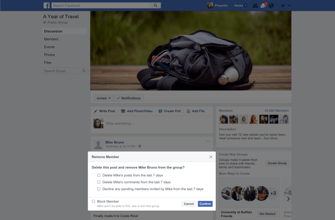 Removed Member Cleanup: If a troll or troublemaker slips into a Group and gets removed, Facebook now allows admins to instantly delete all their posts and comments, and rescind recent invites they’ve sent to potential new members. Facebook could disincentivize Group trolling by making it easy to purge them from the record.