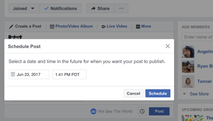 Scheduled Posts: Along with analytics to know the best time to post, Facebook is allowing admins and moderators to schedule posts at those times, or to compose content whenever’s convenient for them and post it later. This permits busy Group admins to write a bunch of posts over the weekend, and then schedule them to publish throughout the week, which is especially important as all these admins are essentially volunteers with day jobs.