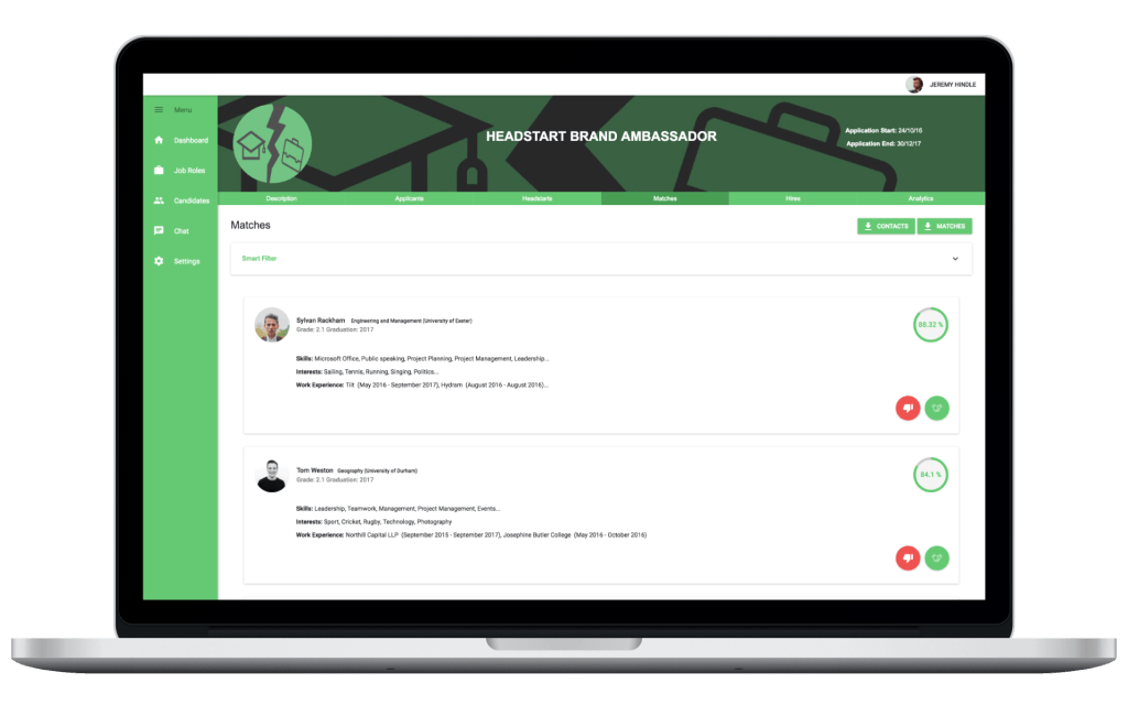 “Companies still use basic criteria — qualifications, grades, University — and screen people out of the process,” he said. “That’s not the things make up whether someone can do a job. That’s a part of the picture, not the whole picture. We wanted to create a platform where students could build a profile, have everything from interests, skills, personality assessments, resumé data, and everything that represented what you’re like as a person. And we wanted to use that fingerprint to essentially match that to how suitable they’d be from a value, cultural and technical perspective.”