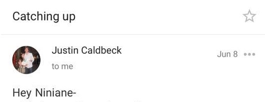 In the email, which was sent at 7:13AM on the morning of June 8, Caldbeck starts by telling Wang it’s “been a long time” since they have been in contact, before segueing into a suggestion they meet to discuss funding for her startup.