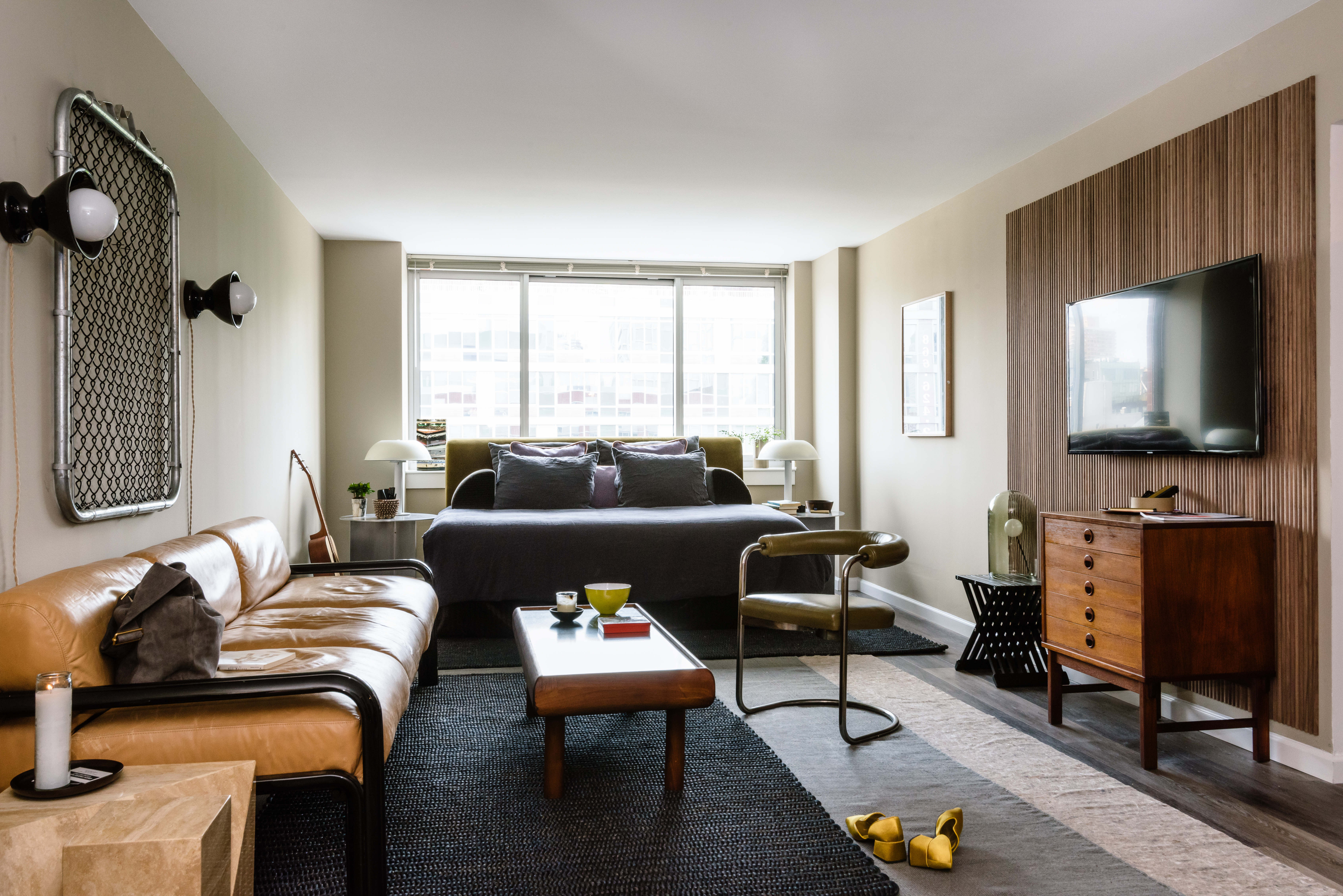 “We spend a lot of time and effort making sure this doesn’t feel like a corporate furnished rental or an Airbnb,” says Yorio. “It’s meant to be very personal and specific. It’s a mix of mid-century vintage and modern furniture, all put together in a way that’s meant to evoke a cross between the Ace Hotel and the Standard Hotel.”