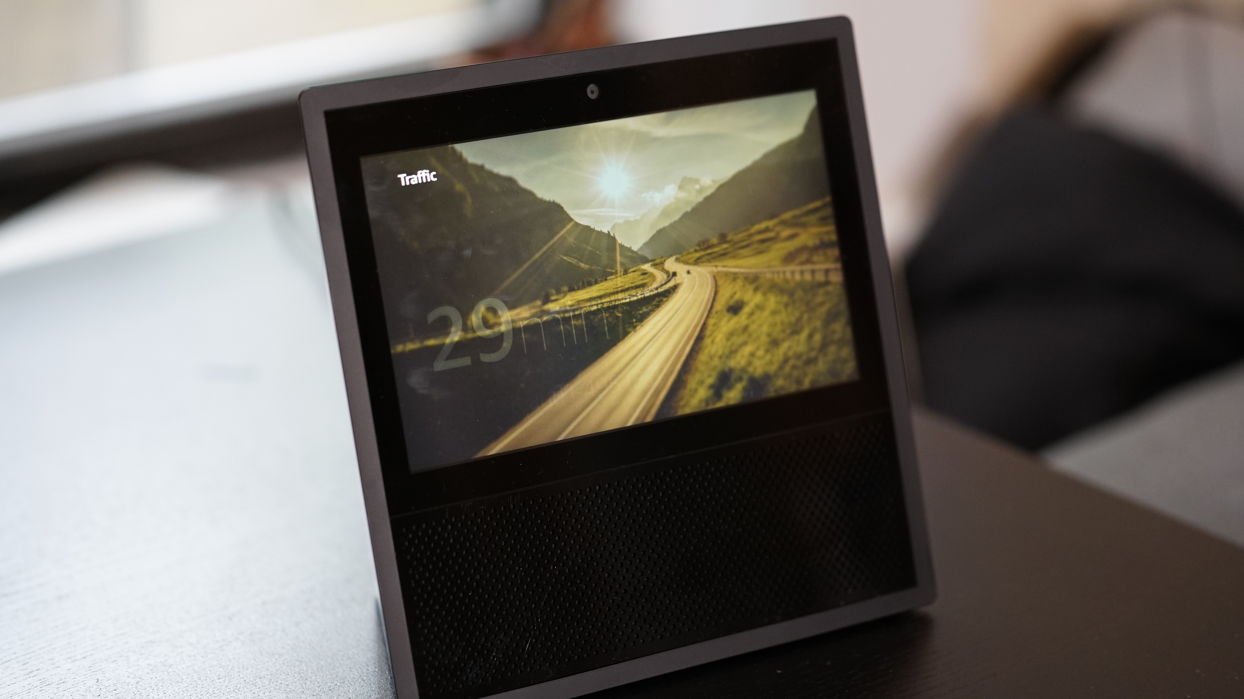 Like the standard Echo before it, the Show is pretty uninteresting at first glance. It’s a wedge-shaped device with a middling seven-inch touchscreen tablet built-in, flanked by a webcam and a big, ugly speaker grille. It’s pretty bulky — not the sort of thing you want to move around from room to room. Mine’s been parked in the same place since Amazon sent it, sitting on the edge of my office desk, next to my modem.