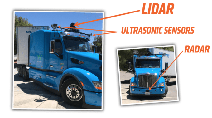 Jalopnik published a number of photos of a Waymo branded truck kitted out with a radar, lidar and ultrasonic radars.