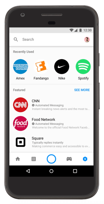 The section Facebook announced at F8 is going live for users stateside, and the company is billing it as an opportunity for people to interact with businesses and brands in more useful ways. The platform is, you guessed it, all about discovering new bots to give a whirl. In the tab, you’ll be able to browse through categories of bots, see featured bots and check out the ones you’ve recently used.