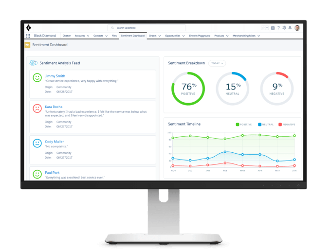 The Einstein Sentiment tool uses advanced technology to understand sentiment, even in cases when it is not entirely clear from the wording. Typically keyword-based tools have trouble with complex wording or sarcasm, but this tool is designed to deal with these. Richard Socher, chief data scientist at Salesforce, who came over in the acquisition of MetaMind last April, suggests if you have difficult wording like “not absolutely satisfied,” a keyword-based system might pick up on absolutely and satisfied and miss the not.