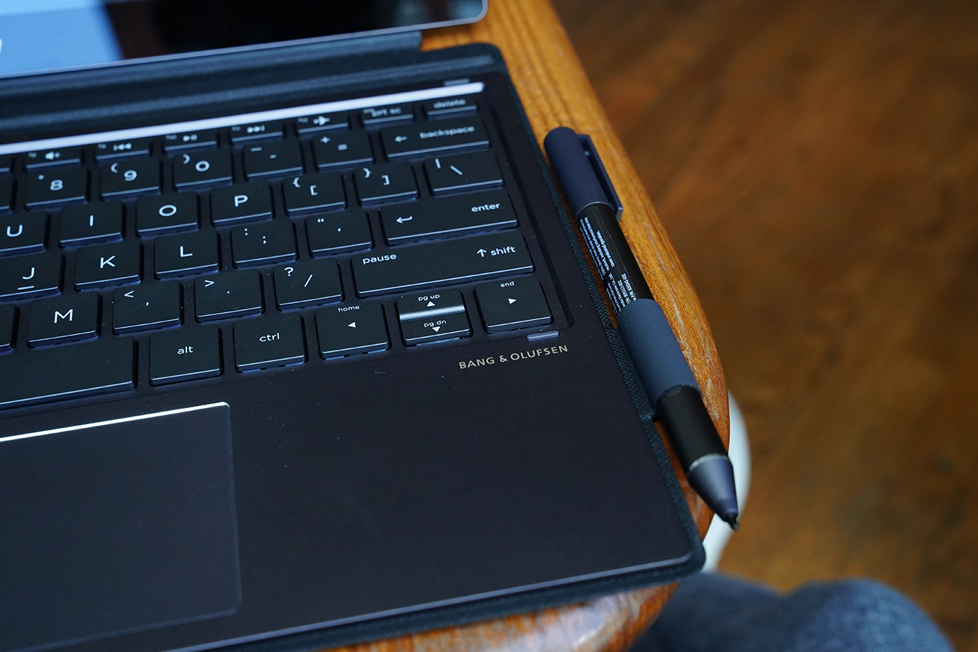 I’m incredibly pleased to see that the included keyboard isn’t an afterthought. Not only is a backlit, island-style keyboard with 1.5mm of key travel but mimics the other Spectre keyboards with a wide, fairly accurate touchpad.