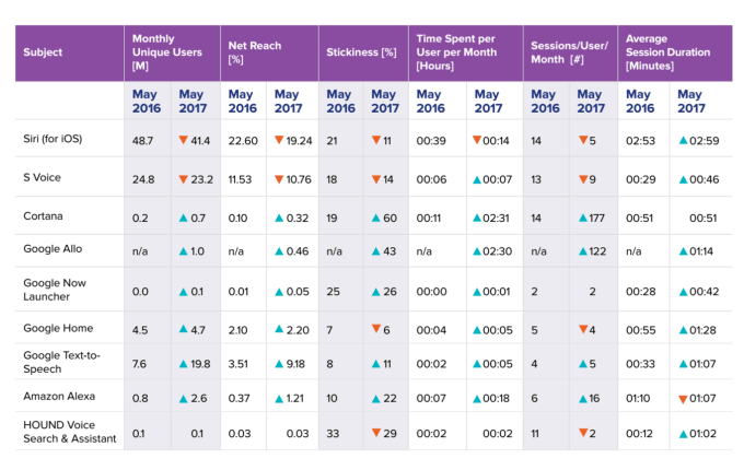Siri remains the most popular virtual assistant with 41.4 million monthly active users in the U.S., according to a new report from measurement firm Verto Analytics out this morning, but it has seen a 15 percent decline since last year – or 7.3 million monthly users. In addition, the study found that engagement with Siri has also dropped by nearly half during this period, from 21 percent to 11 percent.