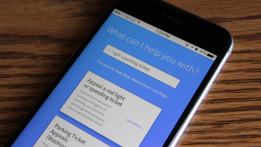 Once this happens, the goal is to monetize. Browder says that he is still thinking about what he wants to do, but part of the plan is to allow businesses to sponsor specific legal bots — think dealership sponsoring the parking ticket bot for a particular city.