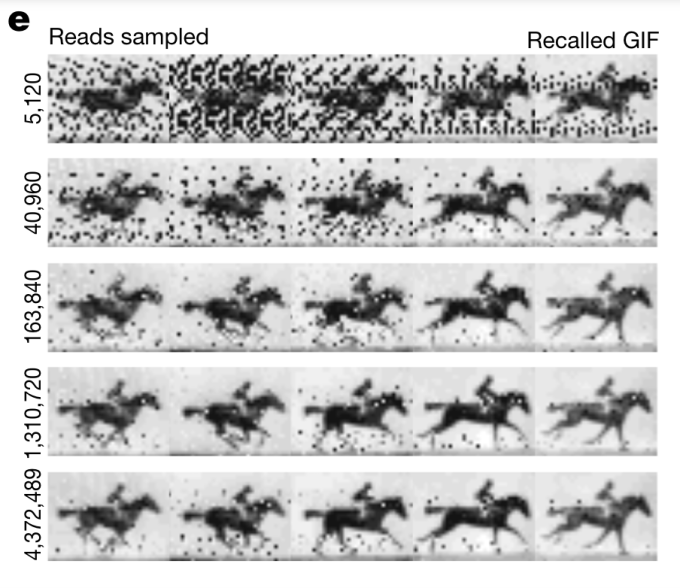 Due to its dynamic, if brief, nature, encoding the historic horse GIF posed unique challenges over say just sticking any old static image into living bacteria (though they did that too). By utilizing Cas1 and Cas2’s sequencing abilities, the researchers encoded the temporal order of the GIF frame by frame and were able to extract and put it back together with 90 percent accuracy.