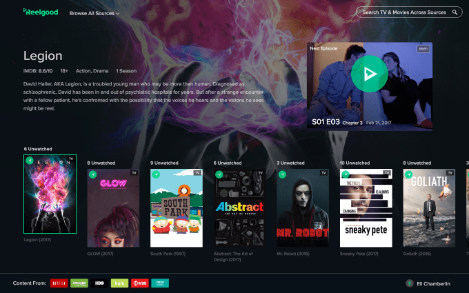 The Reelgood website launched into beta last winter, offering a service to seek out shows and movies from then just a handful of the top streaming services, like Netflix, Hulu, Amazon Prime Video and others.