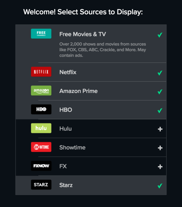 When you visit Reelgood for the first time, you can configure which of the services you want it to display by checking off those you subscribe to, in addition to the option to seek out free movies and TV.