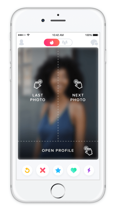 Tinder today is rolling out a new navigational experience for users of its mobile application that’s designed to make it easier to move between profile photos and profile text. In the updated app, photos now take up more screen real estate – that is, they extend to the edge of your phone’s screen. The way you move between photos and profiles has changed too, as you now tap on different parts of the screen to navigate between the photos and the text.