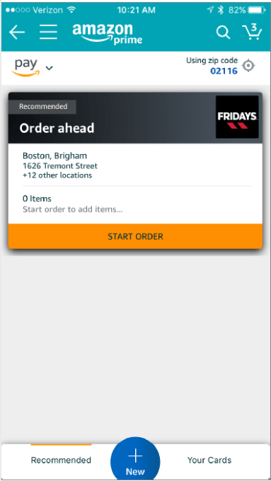 Amazon is today introducing a new feature called Amazon Pay Places, that allows customers to pay for in-store and order ahead shopping experiences using their Amazon app. That is, instead of using cash, check, credit or debit while shopping out in the real world, you can just use your Amazon account information. The first implementation of Pay Places involves a partnership with the TGI Fridays restaurant chain, but we understand this feature will be supported in more in-store and physical world applications in the future.