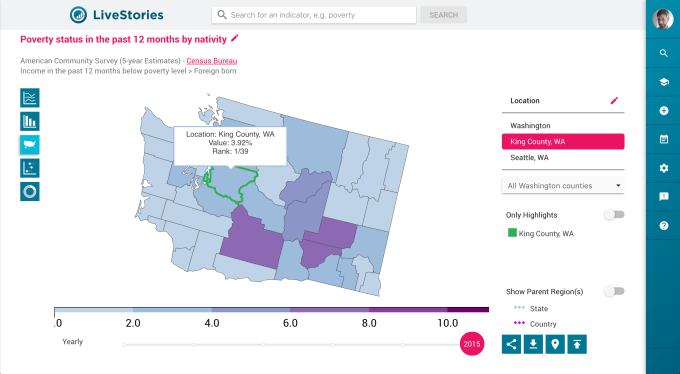 Adnan Mahmud, the CEO and founder of LiveStories, tells me that as a measure of the size of the company’s data trove, currently there are about 2,000 indicators amassed over 50,000 locations, which can measure things like employment trends in a particular zip code, or comparing lung cancer rates between multiple cities, or obesity in a specific demographic in two geographies.