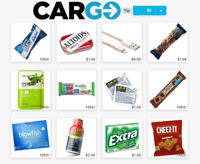Cargo pays per item instead of a percentage of sales because some of the items distributed are free for riders. Jeff Cripe, co-founder and CEO of Cargo, explained that the startup is working with brands looking for a new way to distribute new items and samples to an engaged audience. So some of the snacks available for passengers may be free, with Cargo and drivers still getting paid by the brand.