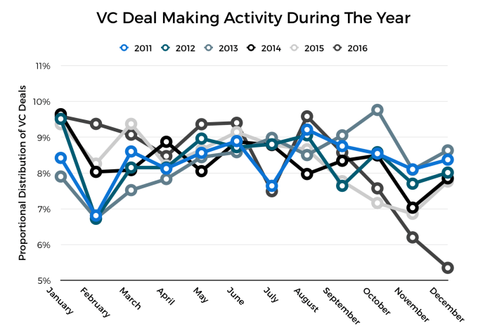 If anything, our findings point to November as a particularly bad time for startups to raise from VCs because, like most others in the U.S., investors are occupied with more important things like seeing family and demolishing Thanksgiving leftovers.