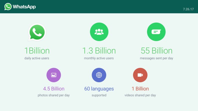 WhatsApp CEO Jan Koum followed up with his own blog post of stats, concluding that “As we celebrate this milestone, we’re committed more than ever to bringing you more useful features to enjoy, while delivering the reliability, simplicity, and security you expect with WhatsApp.”