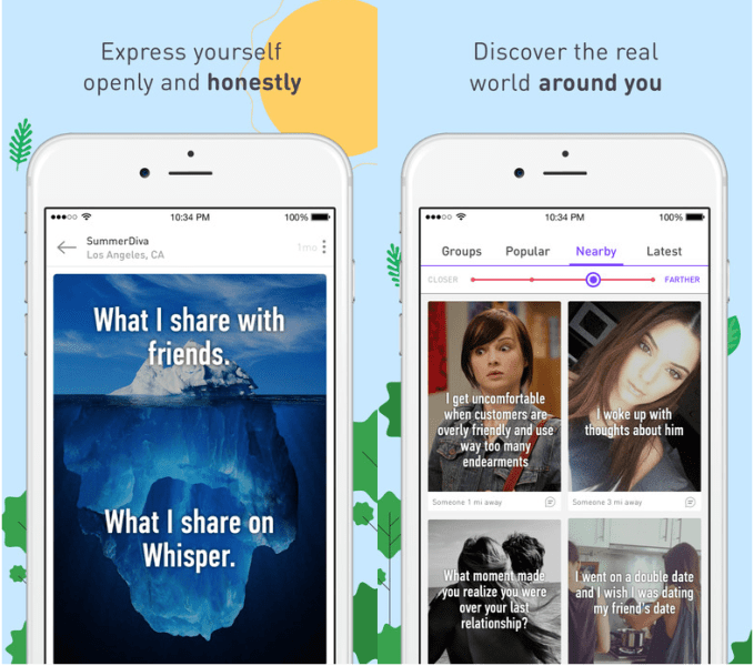 Whisper lets anyone post anonymous snippets of text that other users can like or comment on. The idea is that you’d share more personal or controversial ideas than what you’d post to Facebook or Twitter with your name attached. The anonymity can help people speak out and receive support. Anonymity can also facilitate harassment, though, which Whisper combats with artificial intelligence and human moderators.