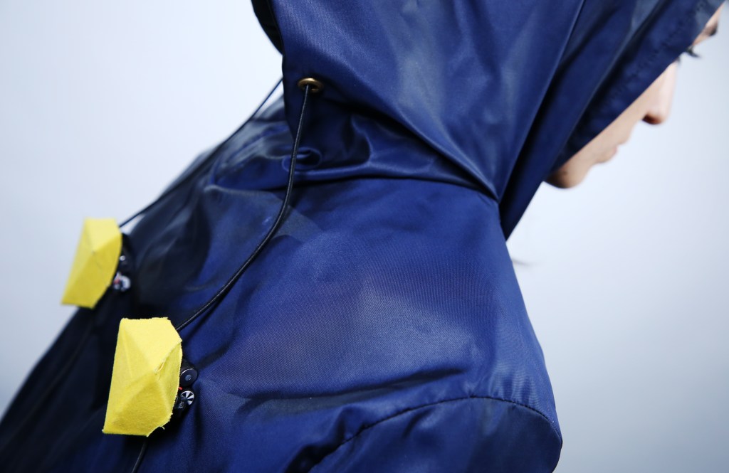 The lab is also exploring some interesting non-design functions. In a more finalized version, the robots could be modular, so users can swap different sensors and other features in and out, based on functionality. On a raincoat, for example, temperature sensors could trigger the robots to pull the hood’s strings down