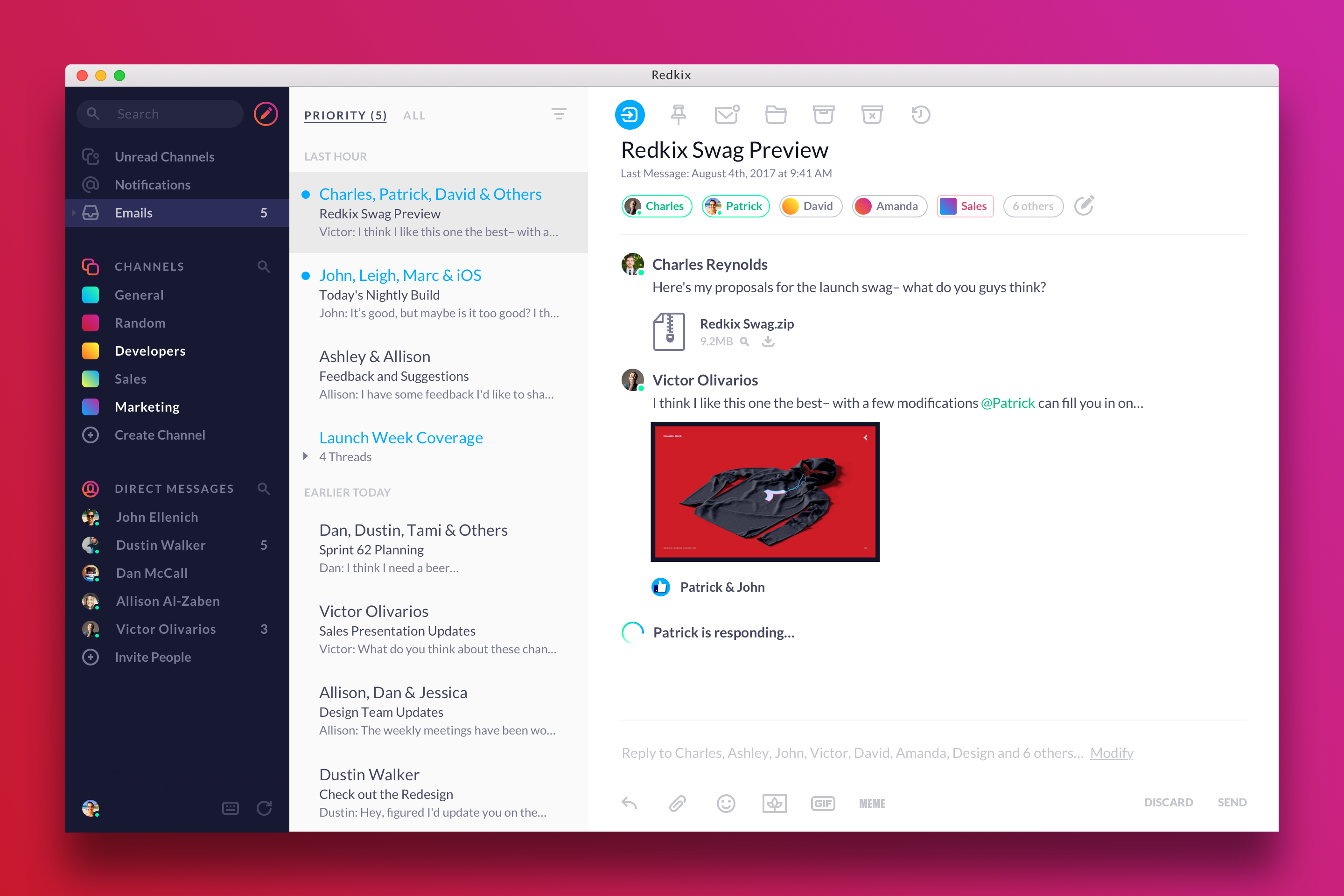 One feature Antebi is especially proud of is threads on Redkix. If you’re a regular Slack users, then you know that this remains an unsolved problem in chat apps (and Slack’s solution still feels clunky to me). Redkix threads live inside their channels but feel more like separate entities that are easier to keep track of than their Slack counterparts.