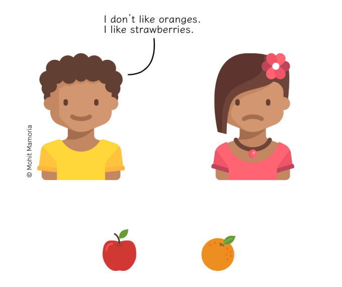 You would find someone who can give you strawberries in exchange for your oranges. Luckily you find your friend, Joe, to barter with you.