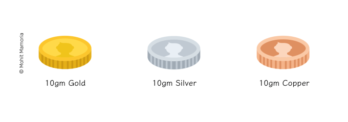 Coins were primarily made of gold and silver because they were rare to mine and didn’t corrode, thus ensuring a stable weight. Because they were easy to carry, we even took it a little too far: We started using them in the form of jewelry — so that they would always stay in our possession, and others could see how rich we were.