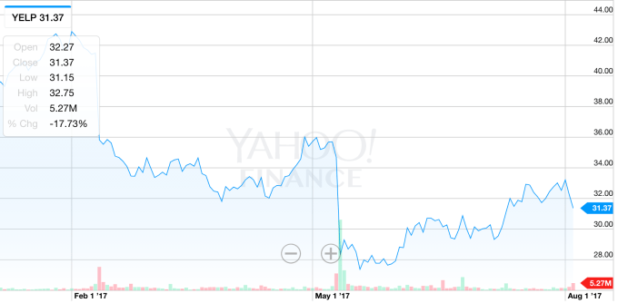 And holy cow, Wall Street is loving this deal. A beat on the company’s revenue, decent growth and this huge proposed deal are sending the stock skyrocketing, with shares up nearly 20 percent now that the news is out. To put that in perspective, Yelp’s shares were down around 17 percent on the year. The company seemed to be treading water a bit — while it’s basically a critical resource for a specific kind of request, it hasn’t quite figured out how to break out of that niche. (We use the word “niche” pretty liberally here, as it’s still a massive market.)