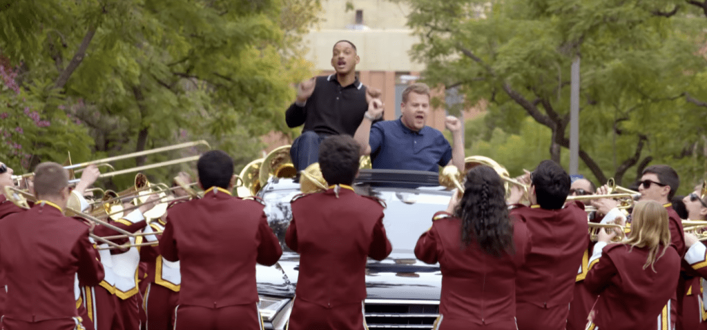 And if you’re a fan of The Fresh Prince of Bel-Air, another teaser shows Will Smith and James Corden singing the main theme song as they head over to a heliport. They then end up singing “I Believe I Can Fly” in a helicopter: