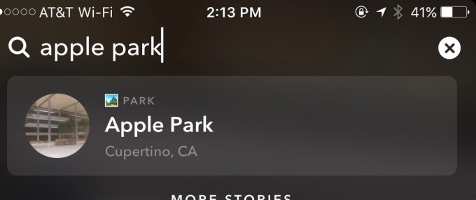 Typing “Apple Park” into Snapchat’s search bar will show you the Apple Park Story, which is a collection of videos taken on the property. The full Apple Park story isn’t showing up on the map itself, so you’re better off searching for it directly instead of scrolling around the map.