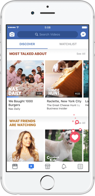 Facebook says it plans to roll out access to Watch to more users and more content creators soon, starting with the rest of the U.S. before expanding internationally. Users with access will see a TV-shaped Watch button in the bottom navigation bar of Facebook’s main app that opens the new video hub.