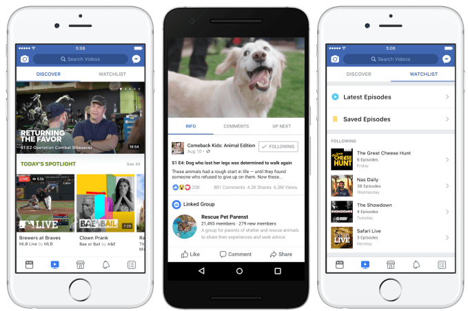 Beyond the Watch tab, you can also discover shows through the News Feed if a publisher you follow posts an episode or friends are talking about it. That gives Facebook the opportunity to artificially boost the presence of shows in News Feed to build a bigger audience for the new content initiative.