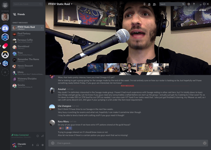 Today Discord expands beyond text and voice with the launch of video chat and screensharing. Now friends can watch each other play their favorite games while talking face-to-face. These features could further addict Discord’s 45 million users, 9 million of whom use its web, desktop and mobile apps each day.