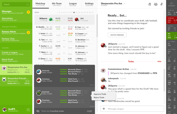 Sleeper, which has raised about $2M in seed funding from Birchmere VC and Expa, and boasts hundreds of thousands of users, calls itself Slack for sports.